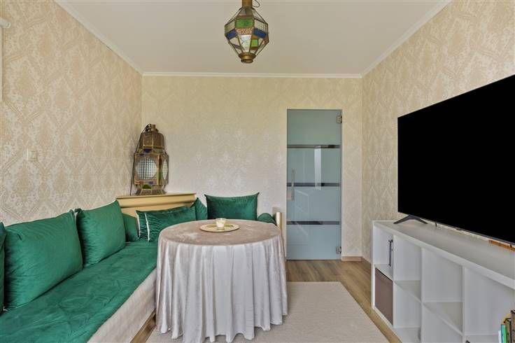Op de begane grond, een woonkamer bestaande uit een eetkamer, een zitkamer en een ingerichte keuken, twee slaapkamers (momenteel omgebouwd tot een secundaire zitkamer en een kantoor).