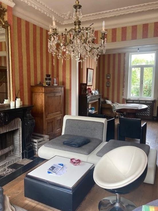 Ce bien est vendu par internet à partir du 13/02/2025 jusqu'au 21/02/2025. Nous vous proposons cette magnifique maison 4 façades de type maison de maître, située dans un cadre agréable à proximité de l'autoroute et du Mont-Saint-Aubert, sur un terrain de 25a 47ca, dont 28ca non imposables. Les rénovations du bien ont été entamées mais celui-ci nécessite encore quelques travaux de rénovation (remise en peinture, remise aux normes de l’électricité, etc). Composition du bien : Rez-de-chaussée : Hall d’entrée Salon / salle à manger avec feu ouvert (parquet au sol) Deuxième salon / pièce de séjour avec feu ouvert (carrelage au sol) Cuisine équipée (cuisinière, évier, frigo encastré, lave-vaisselle) Deuxième salle à manger avec poêle à bois Terra intérieure Cellier avec accès à la chaudière WC Buanderie Deux caves séparées (accès extérieur, cave humide) Premier étage : Hall Dressing (possibilité de bureau) Salle de bain avec douche et lavabo Chambre avec deux lavabos Deux autres chambres Deuxième étage : Sol en plaques OSB Deux greniers Deux chambres Extérieur : Grand jardin avec piscine non chauffée Cour avec second bâtiment comprenant un garage, un espace de rangement et un grenier aménageable (toiture à refaire, non isolée) Informations supplémentaires : Citerne à mazout de 2.000 litres Châssis double vitrage Quelques problèmes d’humidité à prévoir au niveau de certaines pièces et des caves Revenu cadastral : 545,00 €