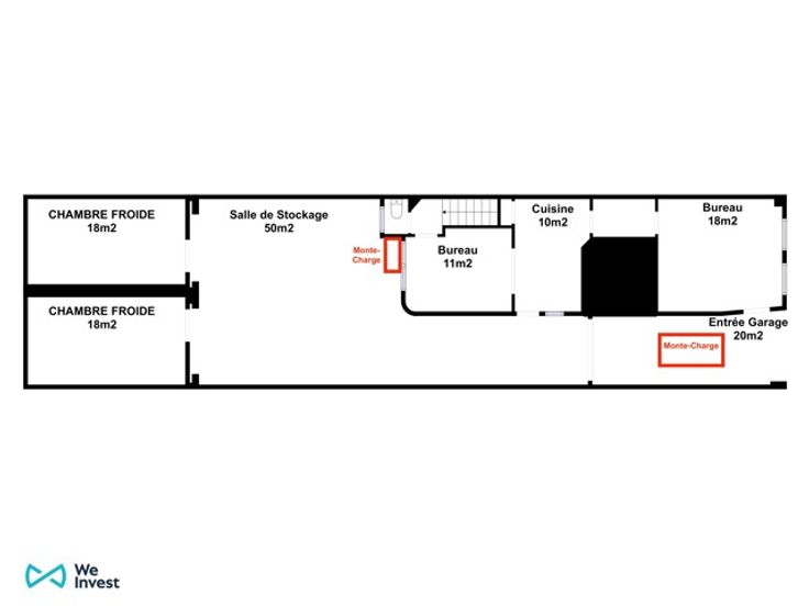 We Invest is trots u dit multifunctioneel magazijn gelegen aan de Archiducslaan 36 in Watermaal-Bosvoorde te mogen aanbieden. Dit pand bestaat uit een ingang voor voertuigen, een hoofdmagazijn van 50 m², twee koelruimtes van elk 20 m² (die indien nodig kunnen worden verwijderd), twee kantoorruimtes, een keuken en een toilet. In de kelder zijn drie opslagruimtes (10 m², 15 m² en 21 m² elk) toegankelijk via twee goederenliften, waardoor het gemakkelijk is om goederen van het ene naar het andere niveau te verplaatsen. Aan de voorkant van het gebouw zijn twee parkeerplaatsen, waarvan er een is uitgerust voor het opladen van een elektrisch voertuig.