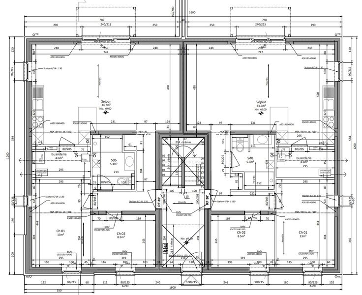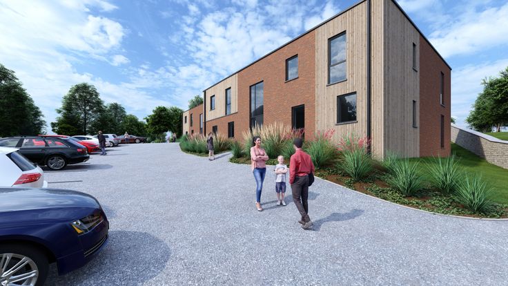Ces 8 appartements sont divisés en deux bâtiments de 4 appartements avec un hall d’entrée commun lumineux.