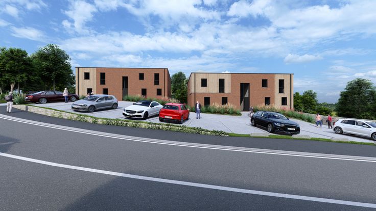 Profitez également d'une terrasse ou d’un balcon avec une magnifique vue sur la nature. En retrait de la route, 2 places de parking par appartement sont prévues.