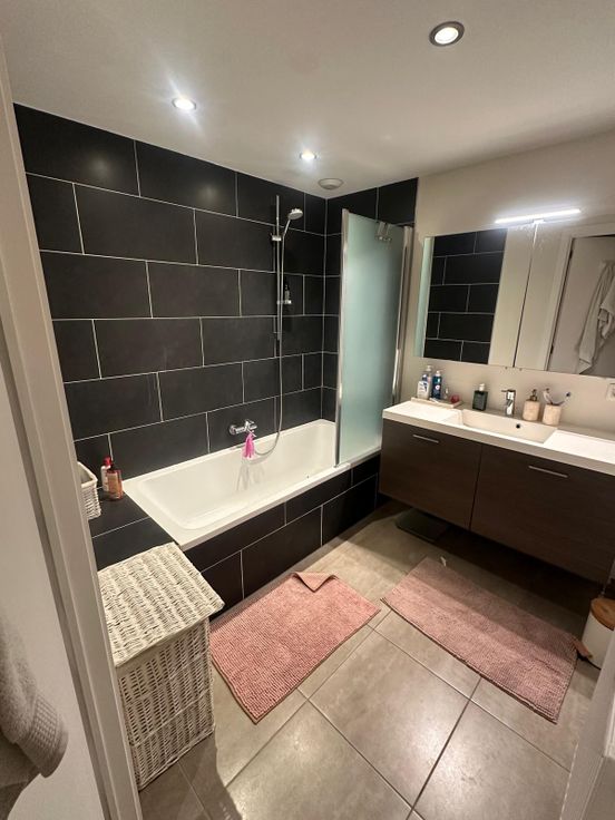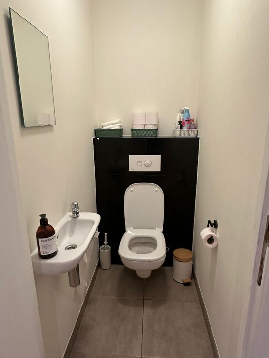 Comfortabele badkamer: Stijlvolle en praktische badkamer met hedendaags comfort.
