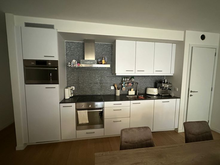 Goed uitgeruste keuken: Moderne keuken met alle nodige toestellen om gemakkelijk te koken.