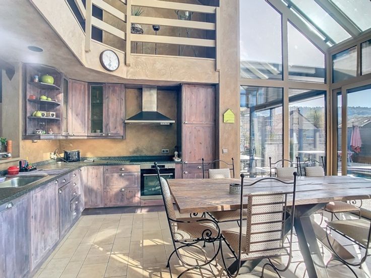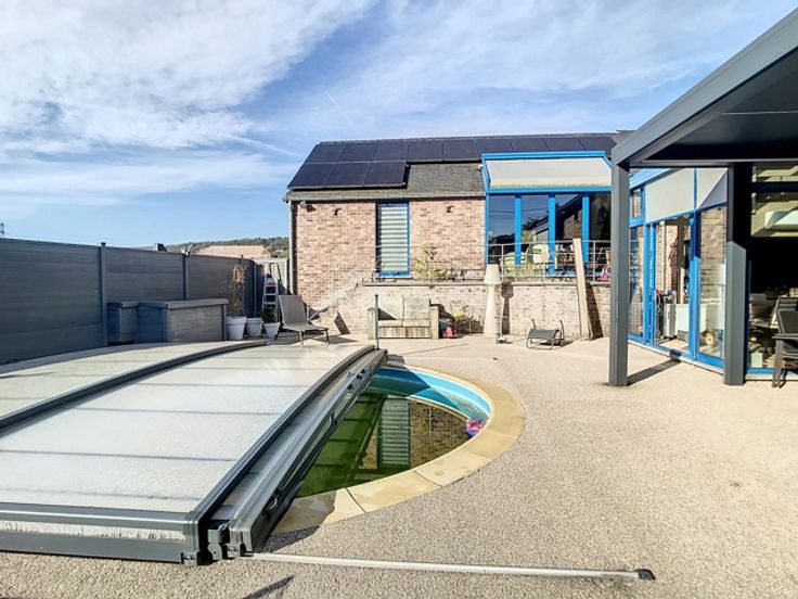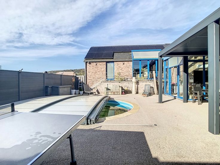 Offre àpd 895.000€ : Ensemble immobilier comprenant une villa et deux appartements. Revenu locatif de l'ensemble : 3500€/mois. La villa comprend: une partie professionnelle : hall d'entrée, bureau, toilettes/vestiaire. En partie privée: hall d'entrée, salle de jeux, cuisine, salle à manger et buanderie. A l'étage : salon, bureau, 4 grandes chambres, dont une avec dressing, salle de douches et salle et bains. Garage et grands espaces de stockage. En extérieur : grande terrasse/solarium avec piscine, pool-cover et pergolas. Les appartements 1/2 chambres, cuisine ouverte sur séjour, salle de bains et débarras. Equipements: chauffage central mazout, climatisation sur l'ensemble, châssis PVC double vitrage, garage, panneaux photovoltaïques, ... INFO & VISITE : ipa.romedenne@skynet.be - 0475/49.22.20