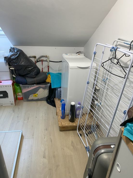 Au 2ème étage : chambre (13 m2) et buanderie (7 m2).