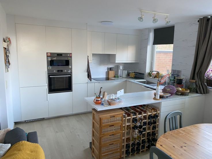 Au RdC : hall d’entrée, toilette, grand séjour avec cuisine équipée ouverte (35 m2)