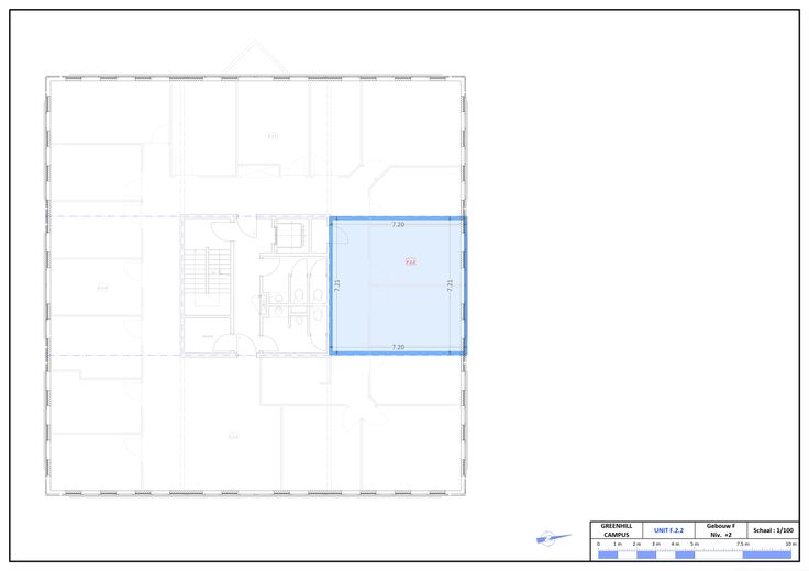 **RECHTSTREEKS VAN EIGENAAR** - 253 m² kantoren te huur op de 2de verdieping van gebouw F van de Greenhill Campus gelegen in het prestigieuze Research Park van Haasrode (Leuven) en beschikt over groene en picknickruimtes. Dit is een nul fossiele energiegebouw en is voorzien om fotovoltaïsche panelen te installeren, evenals elektrische laadstations.
