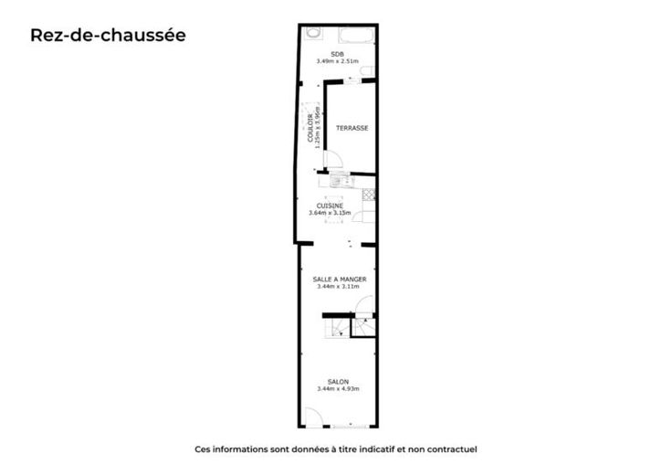 maison avec cour d'une superficie totale de 60m² au sol comprenant: au rez-de-chaussée: séjour ouvert sur salle à manger, cuisine, couloir, salle de bains (WC-évier-baignoire) au 1er étage: 2 chambres au 2ème étage: 1 chambre avec vélux (accès via 1 chambre du 1er) au sous-sol: 1 cave surface de plancher chauffée: 117m²
