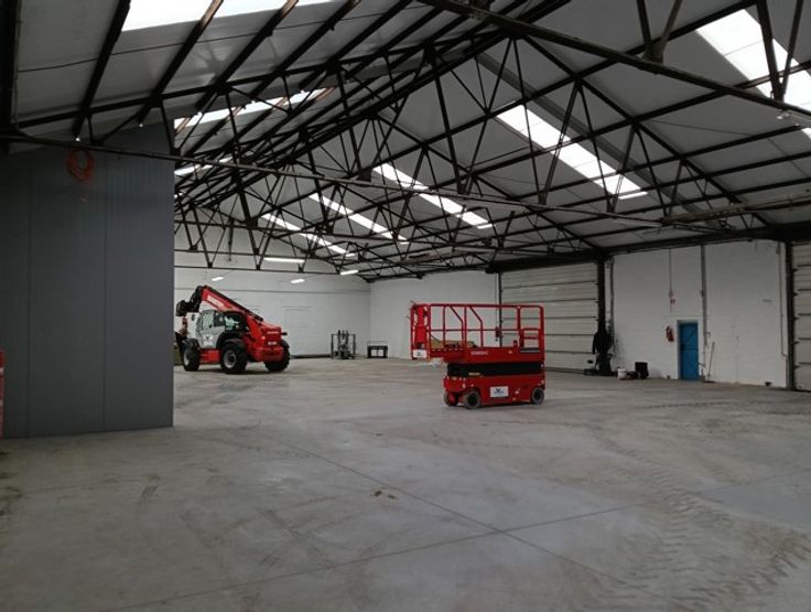 Het gebouw heeft een vrije hoogte van +/- 5 meter en is voorzien van een sectionaal poort (4m20 x 4m00), individuele tellers voor elektriciteit en water.