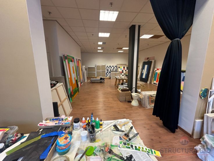 De opslagruimte met kantoren situeren zich op het gelijkvloers, en heeft een totale oppervlakte van 2.325 m².