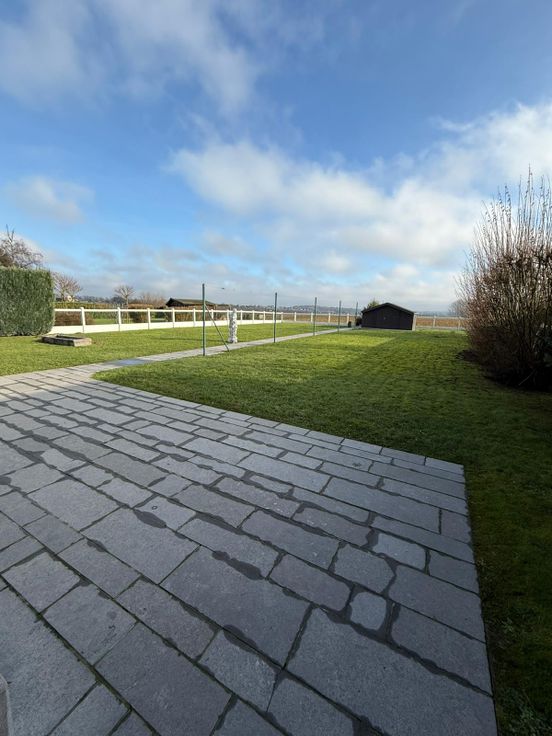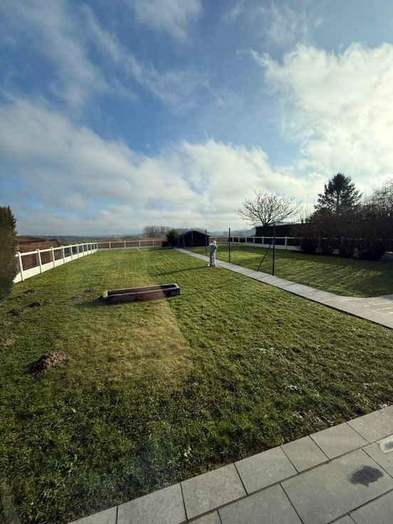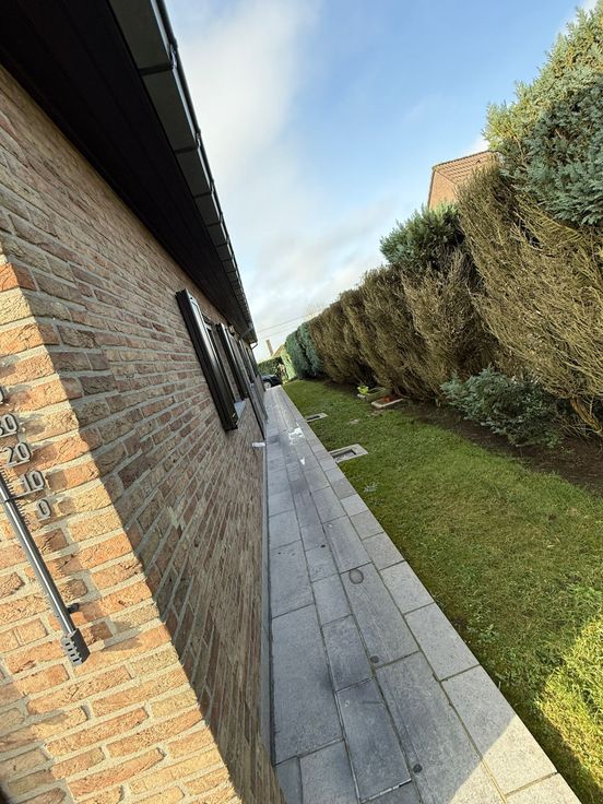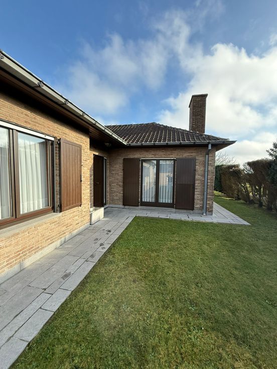 Villa 4 façades avec grand jardin et vue dégagée, dans cadre rural, proche autoroute, commerces, écoles. Parfaitement entretenue, pas de travaux à prévoir, libre à l’acte. Entièrement plain-pied, avec 2 chambres, une salle de bains avec douche, baignoire, WC, double évier, WC séparé, grand living avec feu ouvert, cuisine équipée (four, taques, lave-vaisselle, frigo, congélateur, hotte), buanderie, arrière-cuisine, grand garage avec fosse mécanique et plan de travail (étau). Chaudière à condensation, boiler 120l, volets partout. Grenier de 145 m2 aménageable (déjà équipé de lino, Velux, électricité et placards). Grand jardin avec abri de jardin, robinet extérieur, pompe eau de pluie. PEB en cours. Faire offre à partir de 390.000 €. Contacter de préference par mail : lilaplume@hotmail.com ou au 0476/32.04.66