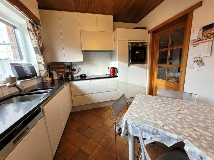 Op deze LEUKE CENTRALE LIGGING, rustig en op fietsafstand van Brugge en het station, is deze RUIME WONING gelegen. Via de inkom met gastentoilet en vestiaire, komen we in een gezellige leefruimte met houthaard en ingerichte keuken. Praktische berging met kasten, betegelde TERRASTUIN, met rechtstreekse toegang naar de GARAGE achteraan! Boven zijn er 3 grote volwaardige slaapkamers en badkamer met ligbad. Via de vaste trap naar de zolder kan er zeker nog een extra kamer/badkamer ingericht worden. DUBBEL GLAS, deels hoogrendementsglas, SPOUWISOLATIE, condensatieketel,… VERRASSEND RUIM! EPC 300 kWh/m² UC3459864 (sted ia)