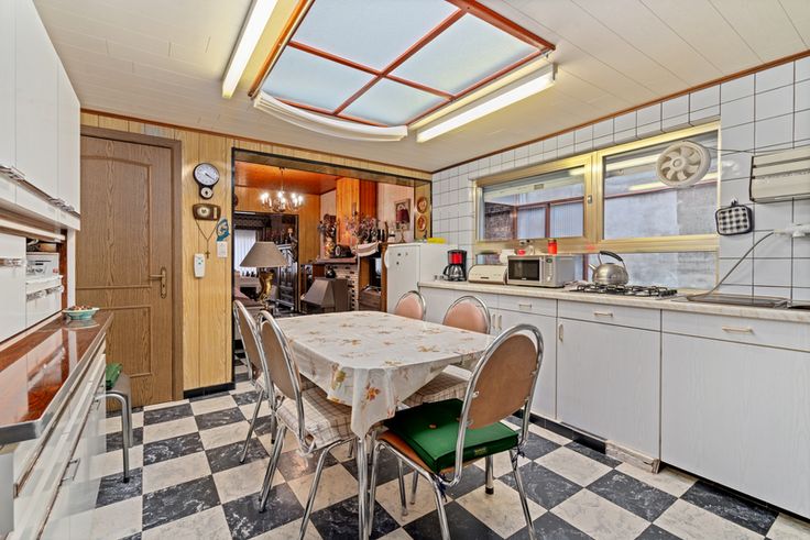 Ontdek deze charmante halfopen bebouwing, verscholen in een autoluw straatje omgeven door sierlijke bomen. Slechts 15 minuten van het bruisende centrum van Gent, biedt deze woning de perfecte combinatie van centrale ligging en rustige leefomgeving. In de nabijheid vindt u diverse grote winkels, zoals Delhaize, Aldi en Colruyt, terwijl een school op de achterliggende straat de kinderen een veilige haven biedt.De voortuin en de handige zijdelingse toegang voor uw fietsen maken het leven hier bijzonder aangenaam. Geen gedoe met het naar binnen brengen van uw fiets, alles kan eenvoudig via de zijkant. Dit is een luxe in de stad, een waardevolle toevoeging aan deze halfopen woning.Achter de aantrekkelijke façade schuilt een goed doordachte i ndeling, met een uitnodigende inkomhal en een royale leefruimte die in drie delen is opgedeeld. Deze ruimte stroomt moeiteloos over in de grote, gezellige familiekeuken, die met zijn seventies look en talloze bergkasten de ideale plek is voor samenkomsten. Hier is volop ruimte voor een grote eettafel, waar mooie herinneringen worden gecreëerd.Achter de keuken vindt u de badkamer, met zijn nostalgische charme en een zithoek voor een weldadig bad of verkwikkende douche, samen met toilet en lavabo. De zongerichte stadstuin, compleet met een schattig hobbyhuisje, is een ware parel – perfect voor ontspanning en creatieve uitspattingen.Op de eerste verdieping bevinden zich twee ruime slaapkamers, ideaal voor rust en privacy. De tweede verdiep