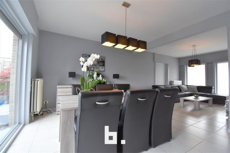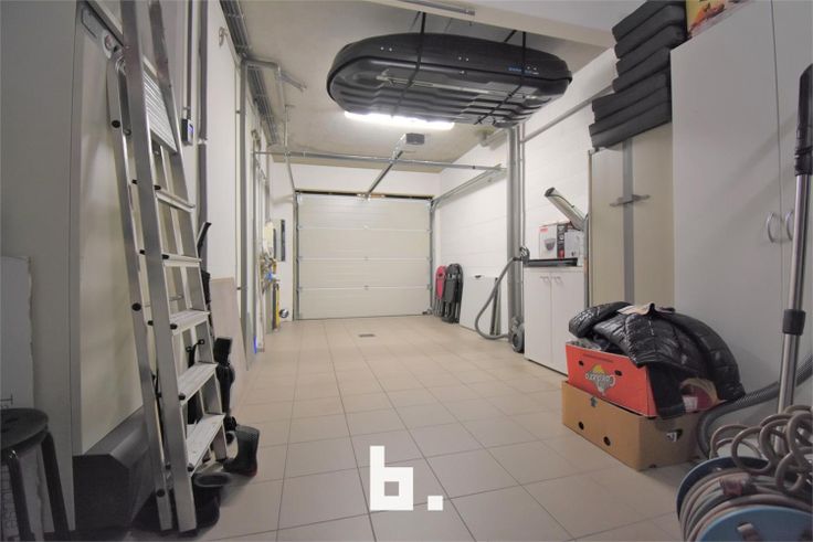 Ruime inkomhal, gastentoilet, prachtige lichtrijke living met volledig uitgeruste vernieuwde keuken, ruime garage met bergruimte.
