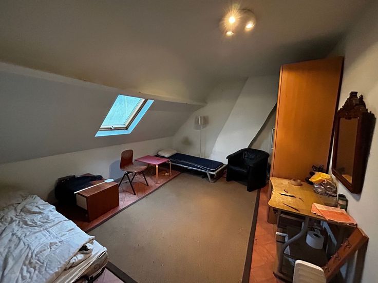 1 e.V.: 4 slaapkamers en een badkamer met ligbad en lavabo. De woning heeft een bewoonbare oppervlakte van 146 m2. Het pand wordt momenteel verwarmd op accumulerende kachels en heeft dubbele en enkele beglazing. Aan de achterzijde van de woning is een koer met doorgang voor de buren. Daarachter ligt de tuin met opslagruimte van 40 m2 (zie laatste foto).
