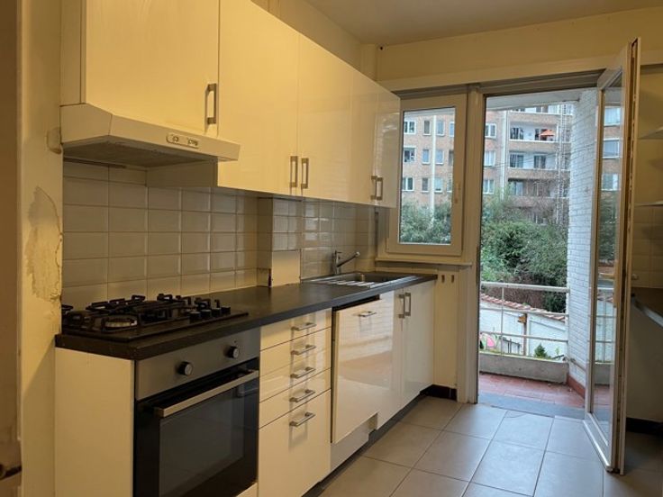 Ruim en licht appartement drie-slaapkamer appartement in een autoluwe straat nabij vele invalswegen (A12, ring, E19), nabij Park & Ride en tram 6. Dit kleinschalige gebouw telt acht appartementen met west-gerichte terrassen en ondergrondse bergingen. Er is geen lift, waardoor de gemeenschappelijke kosten beperkt blijven . Ondergronds bevindt zich ook de gemeenschappelijke CV-ketel op stookolie. Het appartement is volledig voorzien van dubbele beglazing (PVC). In de woonkamer ligt een samengestelde parket en laminaat in de slaapkamers en inkomhal. Zowel keuken, badkamer als toilet zijn voorzien van tegels. De badkamer heeft een ruime douchecel, lavabomeubel, en aansluiting voor wasmachine en droogkast. De keuken ligt afgescheiden van de woonruimte langs de achterzijde met toegang naar het terras en is voorzien van alle toestellen. Tenslotte nog een gastentoilet met handenwasser en ingemaakte vestiarekast in de ruime inkomhal. Ideaal startersappartement of opbrengsteigendom. Epc-label D. Vg, gdv, gvv, vkr, wg.