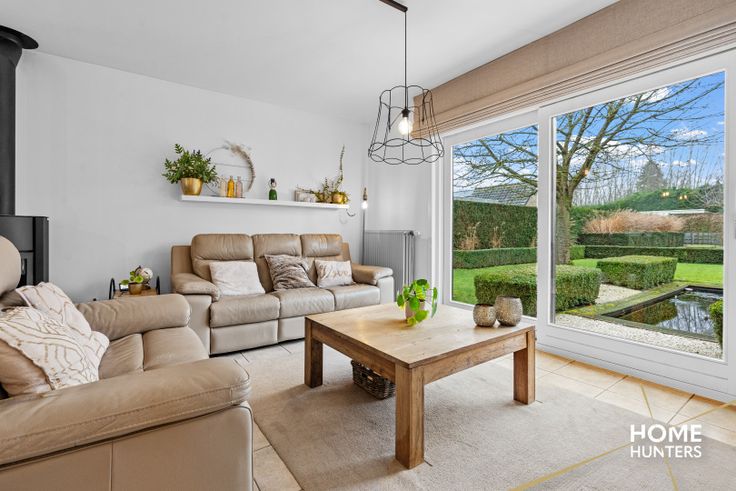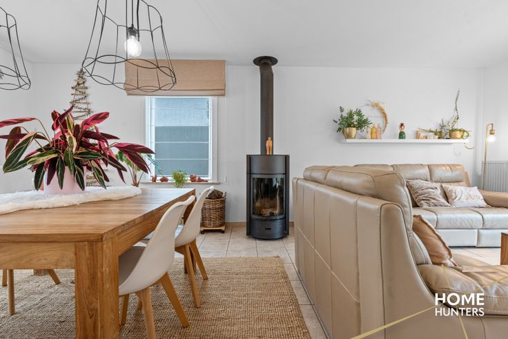 De leefruimte straalt warmte uit en biedt meerdere mogelijkheden om te verwarmen: centrale verwarming op aardgas én een gezellige houtkachel die een knusse sfeer creëert. Overal in de woning zijn rolluiken geïnstalleerd, wat bijdraagt aan comfort en privacy. Bovendien geniet je vanuit de living van een prachtig zicht op de ruime, groene tuin.