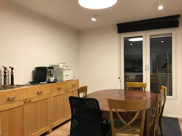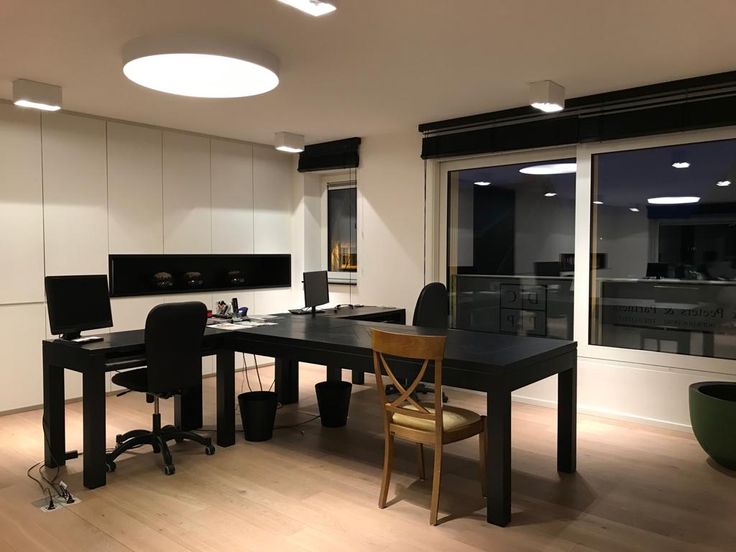 Indeling: Inkomhal, apart toilet, 2 aparte bureaus, keuken, grote open ruimte met ingebouwde kastenwand en gashaard. Parkeermogelijkheden achteraan.