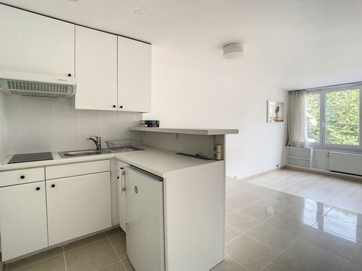 Een paar stappen van het Stephanieplein, lichte studio op de 3e verdieping van 7 (met liften) met een slaapgedeelte, een ontbijt/eetruimte, een open keuken, een doucheruimte en een apart toilet.