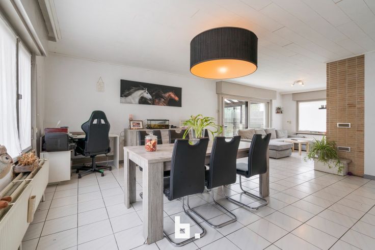 De indeling van deze charmante woning is als volgt: ruime inkomhal, enorm ruime en uiterst lichtrijke leefruimte met zicht op de prachtige, zonovergoten tuin.