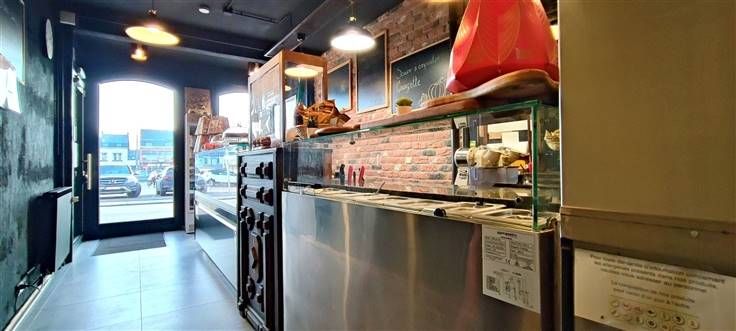À l'extérieur, une charmante terrasse pavée offre une extension agréable de l'espace intérieur, idéale pour accueillir des clients pendant les beaux jours.