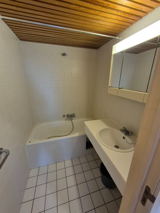Als u het appartement binnenkomt heeft u op uw linkerkant een toilet en een badkamer. Rechtdoor bevindt zich de slaapkamer. Links komen we in de woonkamer met bijhorende keuken en berging.