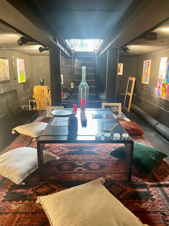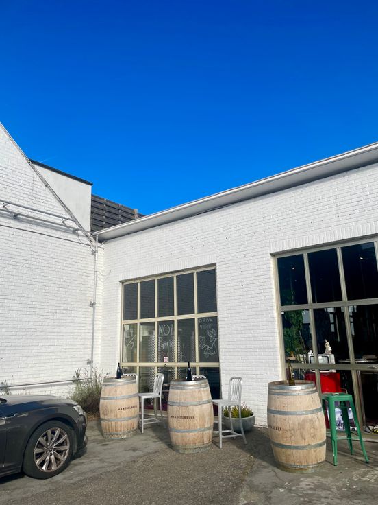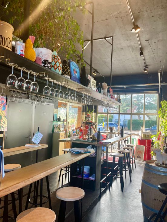 Ancienne station service transformé en caviste avec salle de dégustation et atelier/entrepôt.