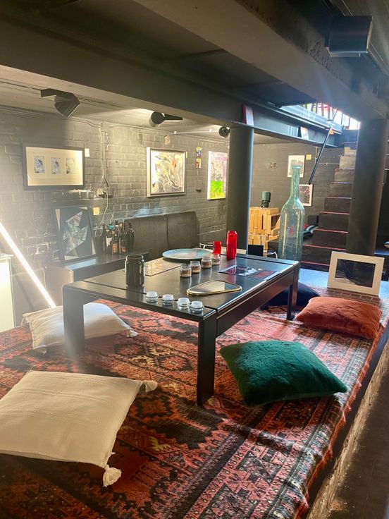 De beaux portails vitrés qui s'ouvrent complètement vers le haut. Actuellement utilisé comme boutique, grand stockage et salle de dégustation de 30 places avec un espace caché (speakeasy à l'emplacement de l'ancienne fosse). Kitchenette, réserve et w.c. Très lumineux, le chauffage et la climatisation sont disponible dans les 2 pièces principales.