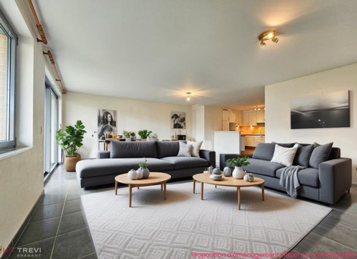 A proximité des Papeteries de Genval et de la gare, TREVI vous propose un vaste et lumineux appartement 2 chambres de ±150m² avec une belle terrasse orientée SUD. Un vaste hall d'entrée avec vestiaire et wc dessert un beau séjour lumineux de ±57m² donnant sur la terrasse, une cuisine USA entièrement équipée , réserve et débarras/buanderie. Le hall de nuit avec placards, WC avec lave-mains, une salle de bains avec bain et douche, 2 belles chambres de ±20m² et 15m². L'ascenseur donne accès directement au niveau du hall d'entrée de l'appartement. Emplacement de parking intérieur ainsi qu'une cave pour 20.000€ (obligatoire). Charges communes de ±230€ par mois. Excellent PEB B 94kw/h/m²/an (20151028016049). Idéal pour personne recherchant le calme et les facilités !!! Belle localisation !