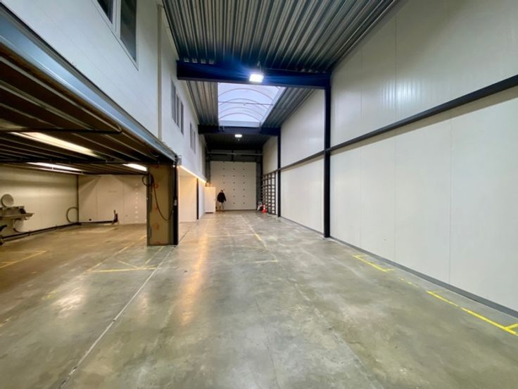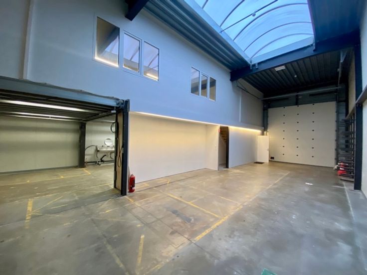 Goed gelegen KMO-unit gelegen te Kapellen in Bosco Park. Het betreft een unit met een totale oppervlakte van 260 m² op gelijkvloers waarvan 20 m² ontvangstruimte. Via een vaste trap bereikt men op de eerste verdieping het kantoor met een totale oppervlakte van 90 m². Hier bevindt zich tevens de mezzanineverdieping met 55 m² extra opslagruimte.