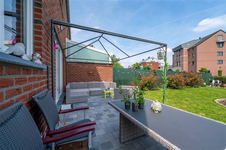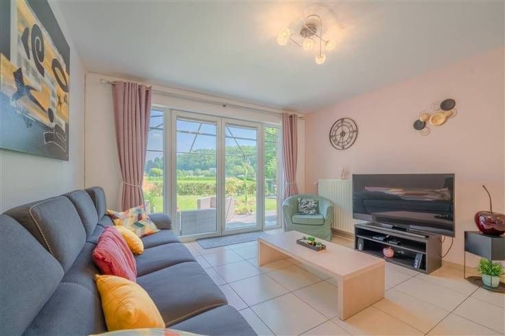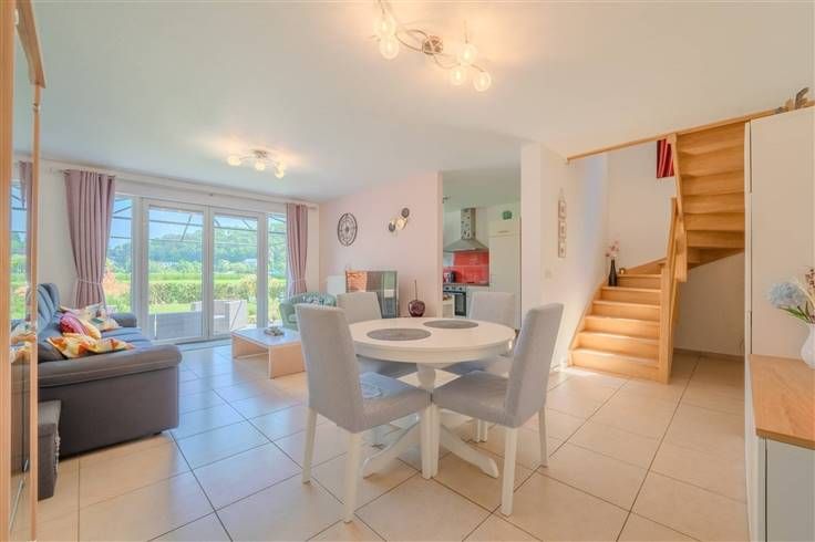 Op 5 minuten van Huy, tegenover de Maas, in een klein paradijselijk hoekje ... Kom en ontdek dit charmante nieuwe huis, gelegen in een mooie, omheinde, smaakvol aangelegde tuin Het bestaat uit een inkomhal, wc, woonkamer, volledig uitgeruste keuken, bijkeuken, garage, 3 slaapkamers, badkamer met wc .