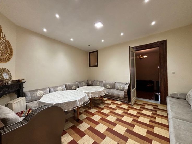 Elle se compose comme suit : Au rez-de-chaussée : un hall d’entrée donnant accès au commerce et à la pièce de vie, accessible également par une entrée indépendante depuis l’extérieur. La partie privée se compose d’un salon +/- 19 m², une salle à manger +/- 19,15 m², une cuisine +/- 18 m² et une véranda +/- 7,35 m², ainsi qu’une cour et un jardin de +/- 55m².
