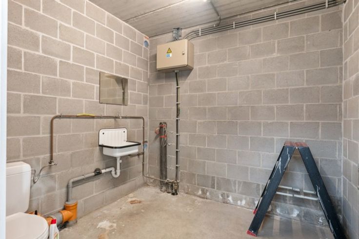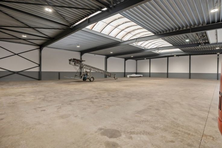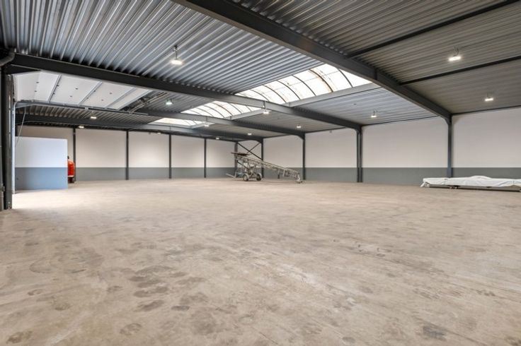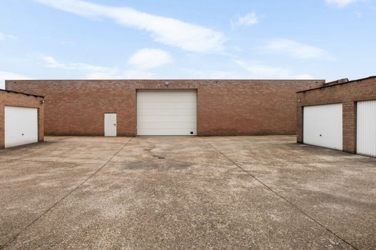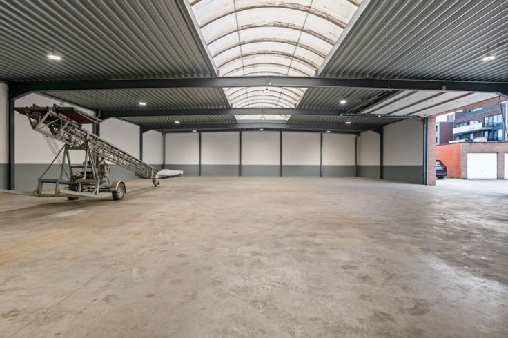 Het magazijn, recent volledig gerenoveerd, verkeert in uitstekende staat. De opslagruimte heeft een vrije hoogte van 4,5 meter en is uitgerust met een grote automatische sectionale poort, een robuuste polybeton vloer met een draagkracht van 3 ton per vierkante meter en een conform gekeurde elektrische installatie met driefasestroom (3 x 380). Het dak en de wanden zijn volledig geïsoleerd, terwijl een lichtstraat over de volledige breedte van het dak zorgt voor overvloedig natuurlijk licht, aangevuld met energiezuinige LED-verlichting. Een aparte sanitaire ruimte, voorzien van een toilet aangesloten op de riolering, biedt extra gebruikscomfort.