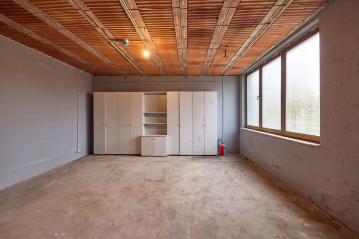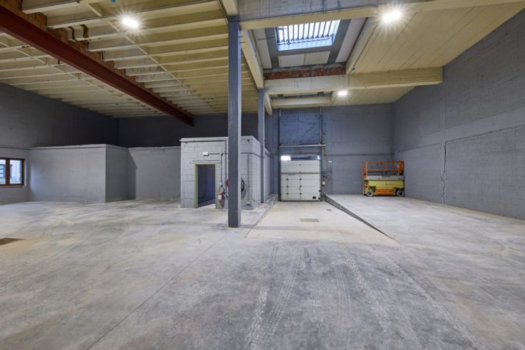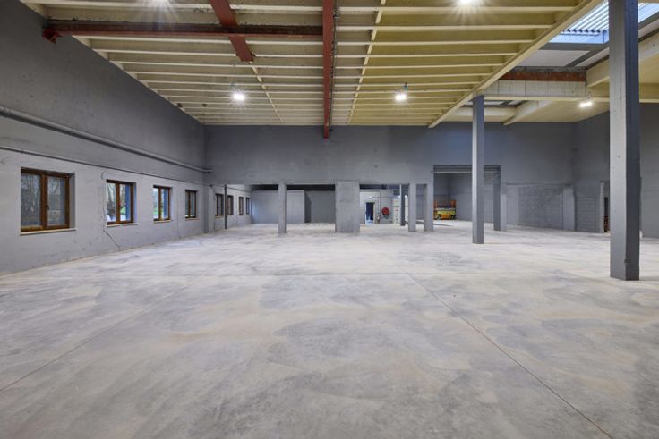 Nieuw: Gepolierde betonvloer, nieuw dak met lichtkoepels