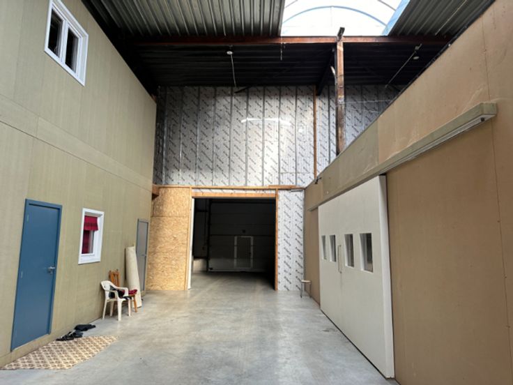 Te huur: 1.200 m² magazijn met 4m elektrische sectionaaldeur (unit A8 op het plan), versterkte vloerplaat voor het verplaatsen van zware machines + hoogspanningscabine, 200 m² kantoor met polyvalente ruimte (verwarmde kantoren + persluchtsysteem + unitverwarming in de hal + toiletten + douches + keuken), inbraakalarm + brandalarm + bewakingscamera's binnen en buiten, internet + Wifi. Het gebouw is uitgerust met een koepel voor rookafvoer, brandblussers met onderhoudscontract + brandslanghaspel, LED-verlichting + getimede buitenverlichting. Het gebouw is uitgerust met een koepel voor rookafvoer, brandblussers met onderhoudscontract + brandslanghaspel, LED-verlichting + getimede buitenverlichting. 240Volts eenfasige en 400Volts driefasige elektrische installaties.