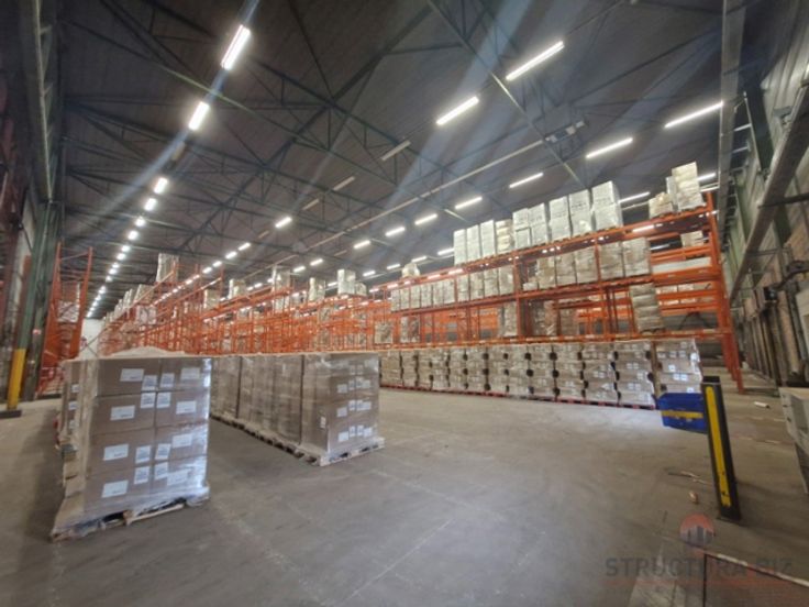 Dit deel van de site beschikt over 2896m² opslagruimte. Het magazijn is uitgerust met een sectionaalpoort en heeft een vrije hoogte van 11m.