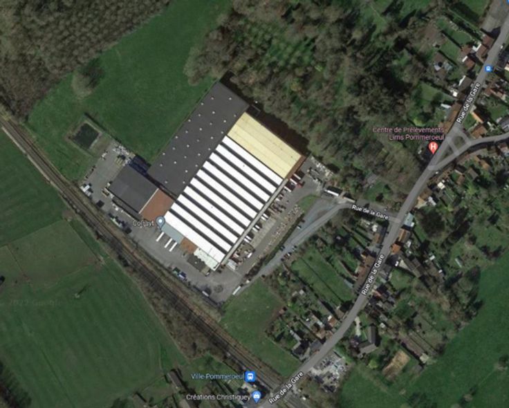 Opslagruimtes met kantoren gelegen aan de Rue de la Gare in Pommeroeul. Deze locatie is gemakkelijk bereikbaar met de auto via de E42 en met het openbaar vervoer, met een bushalte op slechts 350 meter afstand en een tramstation op 400 meter afstand.