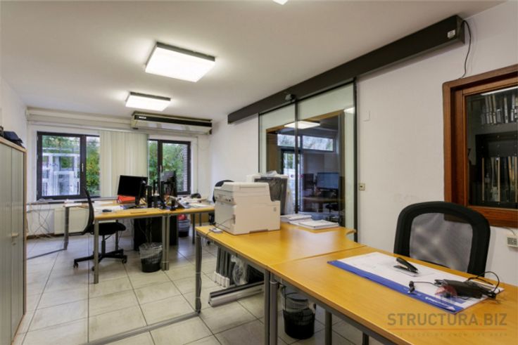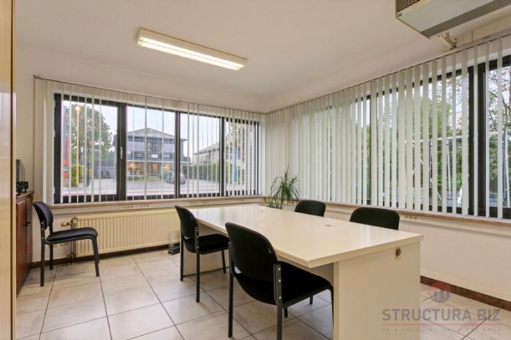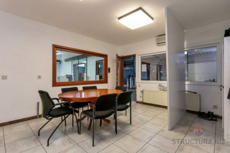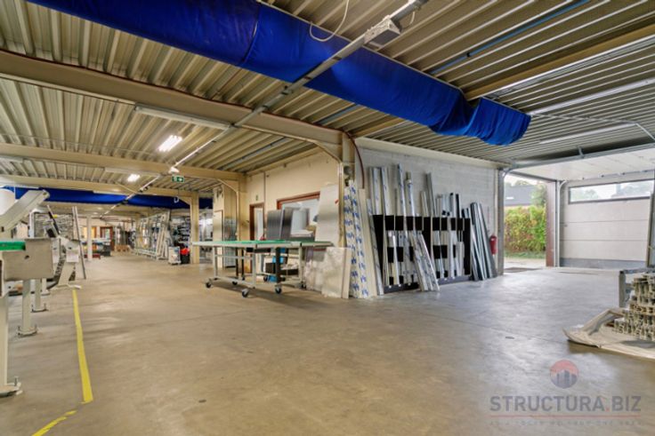 Polyvalent bedrijfsgebouw bestaande uit een opslagruimte/atelier met kantoren en een appartement op het eerste verdiep. De opslagruimte heeft een vrije hoogte van 3,5 m en is voorzien van een gepolierde betonvloer. Het pand beschikt over twee toegangspoorten: een ruime sectionale poort en een kleinere poort met geïntegreerde deur. Geklimatiseerde ruimte.