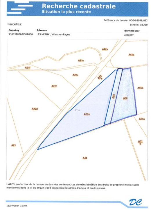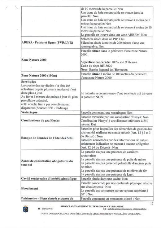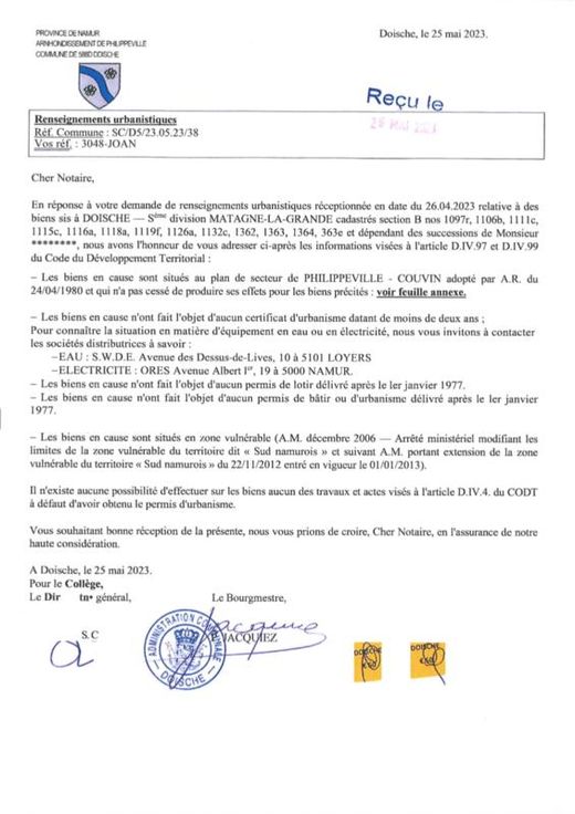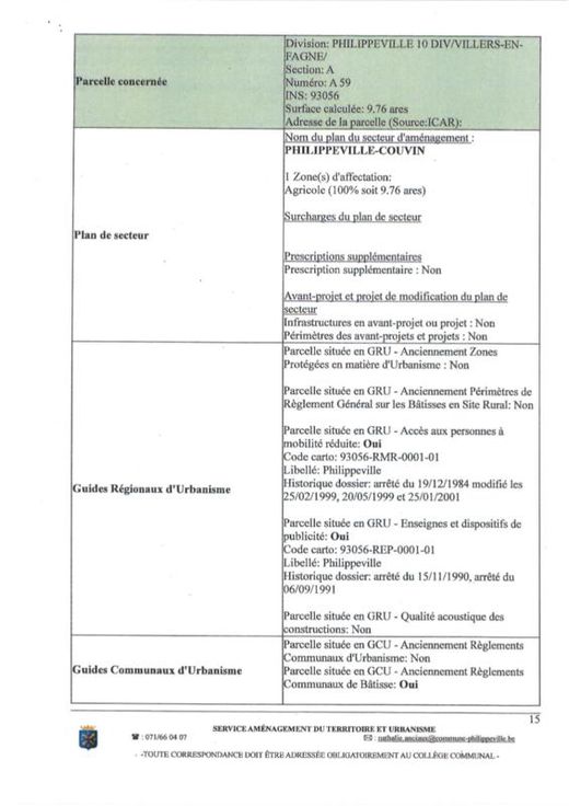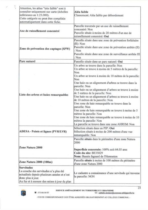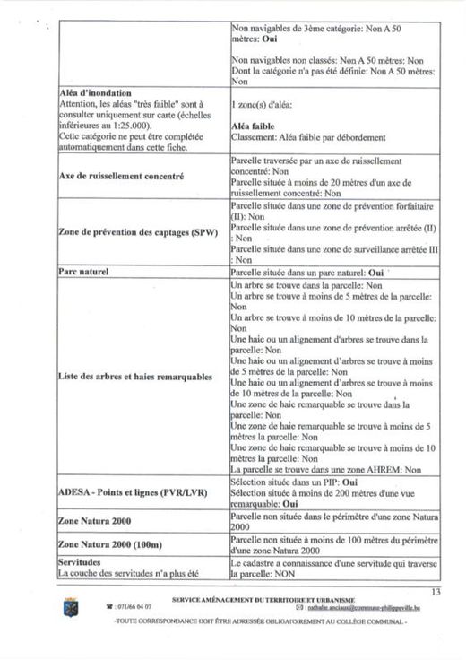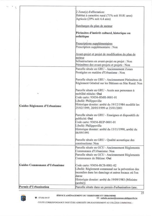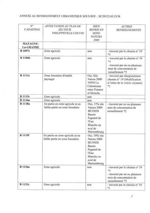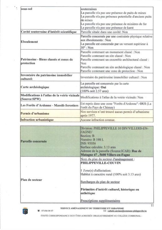 Différentes terres agricoles et pâtures occupées par fermiers. VILLE DE PHILIPPEVILLE, dixième division, VILLERS-EN-FAGNE 2. Une pâture sise Les Neaux, sct A, 0060AP0000, d'une superficie de 64 a 10 ca. 3. Une pâture sise Les Neaux, ssct A0058P0000, d'une superficie de 27 a 80 ca. 4. Une pâture sise Les Neaux, sct A 0059P0000, d'une superficie de 9 a 80 ca. COMMUNE DE DOISCHE, cinquième division, MATAGNE-LA-GRANDE 5. Un terrain sis Quebry, , sct B 1097RP0000, d'une superficie de 4 a 49 ca. 6. Une pâture sise Quebry, sct B1106BP0000, d'une superficie de 3 a 30 ca. 7. Un terrain sis Quebry, sct B 1111CP0000, d'une superficie de 4 a 32 ca. 8. Une pâture sise Quebry, sct B 1115CP0000, d'une superficie de 96 ca. 9. Une pâture sise Quebry, sct B ne superficie de 33 a 20 ca. 10. Un terrain sis Quebry, sct B1118AP0000, d'une superficie de 32 a 30 ca. 11. Une pâture sise Quebry, sct B 1119FP0000, d'une superficie de 86 a 52 ca. 12. Une pâture sise Quebry, sct B 1126AP0000, d'une superficie de 1 ha 5 a 20 ca. 13. Une pâture sise Quebry, sct B 1132CP0000, d'une superficie de 78 a 86 ca. 14. Une pâture sise Quebry, sct B 1362P0000, d'une superficie de 22 a 10 ca. 15. Une pâture sise Petite Quebry, sct B 1363P0000, d'une superficie de 21 a 60 ca. 16. Une pâture sise Quebry, sct B 1364P0000, d'une superficie de 26 a 40 ca. 17. Un terrain sis Chem de Draviere (Lot 2), sct B 0363EP0000, d'une superficie de 6 a 24 ca.