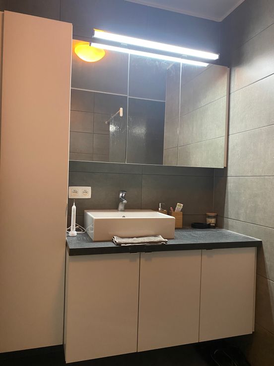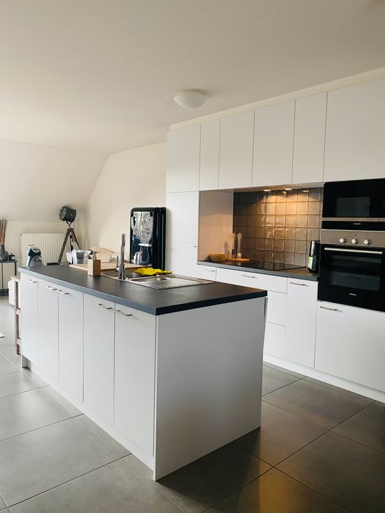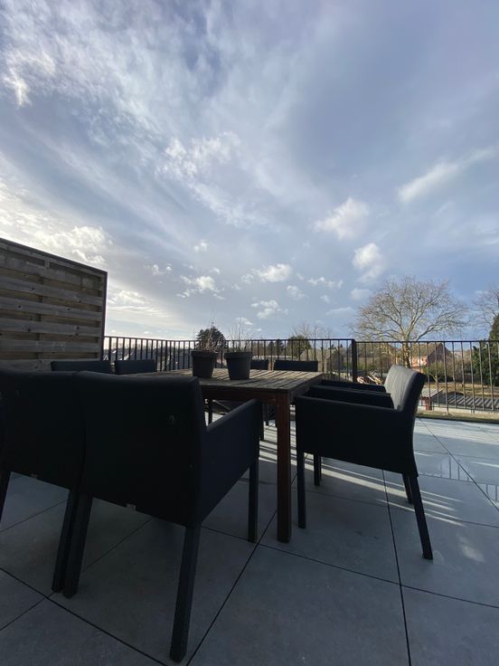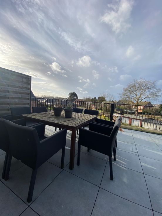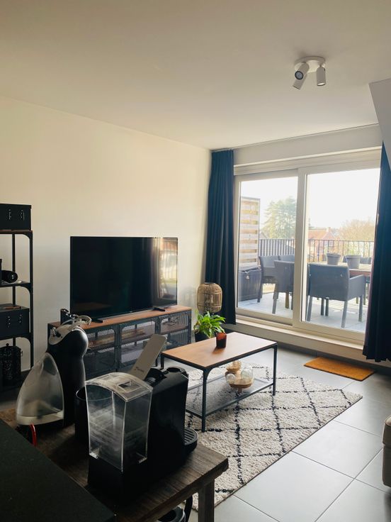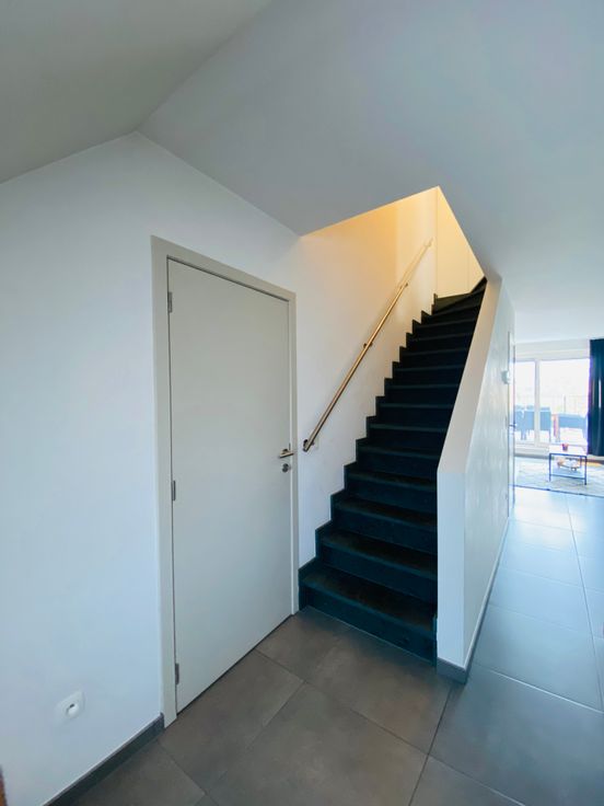 inkomhal met gastentoilet, badkamer en een berging. Verderop wandelt u de leefruimte binnen met een volledig ingerichte keuken (vaatwasser, oven, koelkast) en voldoende mogelijkheden om de ruimte in te delen naar uw wensen. Een tweede berging zorgt voor een ordelijke woonkamer en een ruim zuid-terras maakt de beleving compleet. De trap brengt u naar de bovenste verdieping waar een maatwerkkast extra bergruimte geeft. De slaapkamer is tenslotte ook uitgerust met een volledige kastenwand. U beschikt over een derde berging die dienst doet als wasplaats. Inbegrepen in de huurprijs zijn een ondergrondse parkeerplaats, een fietsenberging op het gelijkvloers en alle gemeenschappelijke onkosten.