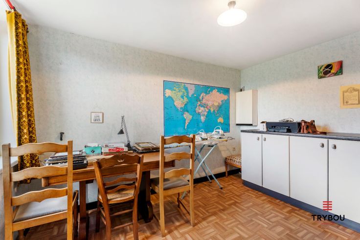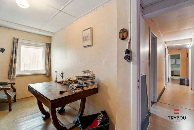 Uitstekend gelegen, goed onderhouden woning met grote, zonnige tuin. De woning bestaat uit: Gelijkvloers: Inkomhal - bureau/slaapkamer - deur naar kelder- eetkamer- aparte woonkamer- ingerichte keuken - berging- geïnstalleerde badkamer - grote tuin met twee tuinbergingen en toegang tot de garage. Verdieping: Vaulte - gang - 6 slaapkamers - apart toilet in waskamer met lavabomeubel. Interesse in dit pand? Contacteer Thijs of Celine 051/57.54.61 thijs@grouptrybou.be celine@grouptrybou.be