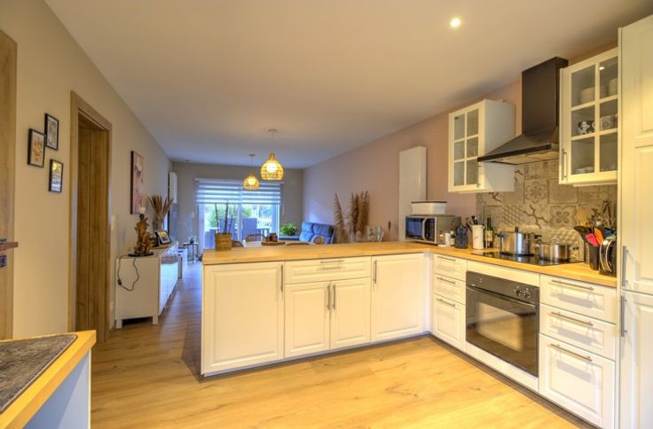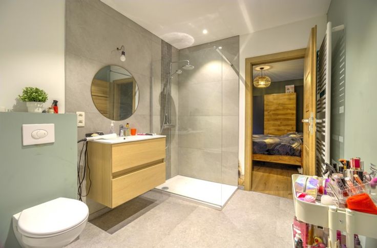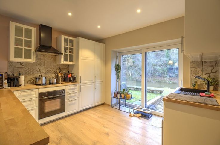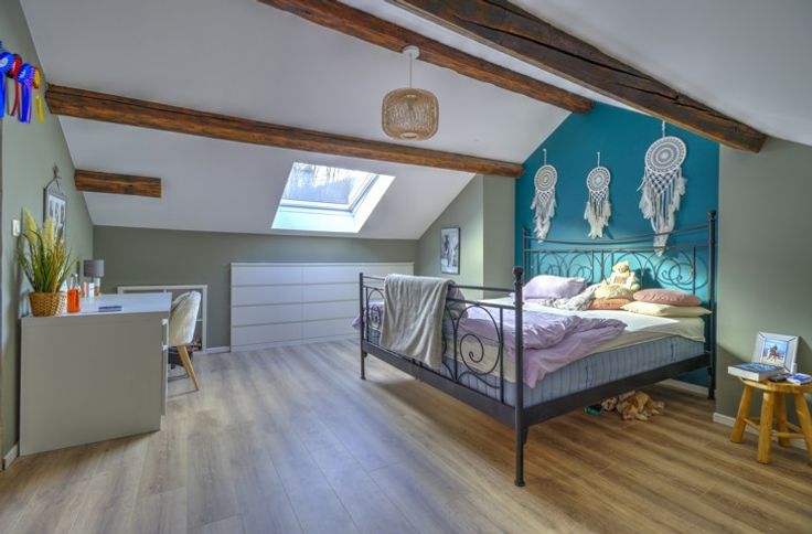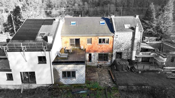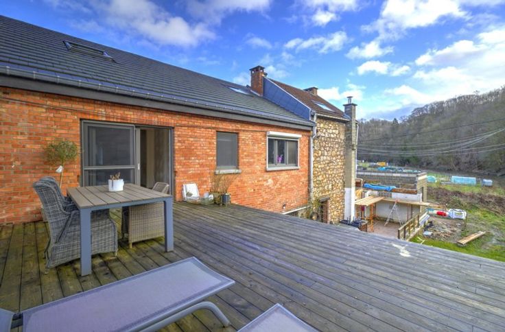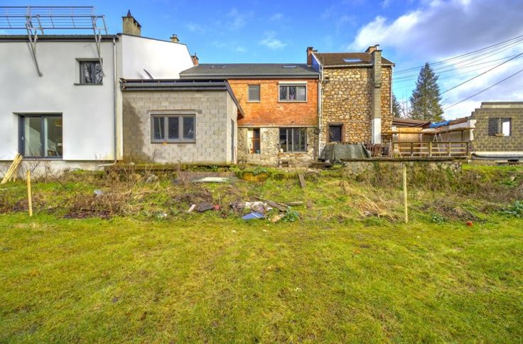 SPACIEUSE MAISON 5-6 CHAMBRES EN GRANDE PARTIE RENOVEE AVEC GARAGE, JARDIN ET TERRASSES SITUEE EN RETRAIT DE LA ROUTE - COMPOSITION - Sous-sol : deux caves de 13m² - 5m² - Rez-de-chaussée : un hall d'entrée de 10m², un garage de 27m² avec coin buanderie, un séjour de 20m², une cuisine équipée de 11m² (évier, four, taques, hotte, frigo, congélateur) donnant accès aux extérieurs et à une salle de douche de 6.5m² communicante avec une chambre de 10m² - 1er étage : un palier de 7m², deux chambres communicantes de 11m² - 13m², une chambre de 15m², un espace séjour + cuisine (non-équipée) de 38m² donnant accès à une seconde terrasse de 35m², une salle de douche de 6.5m² donnant accès au deuxième étage - 2ème étage (mansardé) : un palier de 10m², deux chambres de 22 - 20m² avec rangements sous comble - Extérieurs : un atelier de 15m², une terrasse de 16m², un jardin d'environ 100m² - DIVERS : possibilité d'habitation kangourou ou immeuble de rapport (sous réserve d'acceptation de l'urbanisme), toiture récente (2020) et isolée, châssis PVC double vitrage, chauffage central au mazout via chaudière à condensation (2021), porte de garage sectionnelle électrique, deux compteurs électriques (mono + bi-horaire), finitions/aménagements extérieurs à prévoir, RCNI 1343€, description non-contractuelle communiquée à titre informatif.