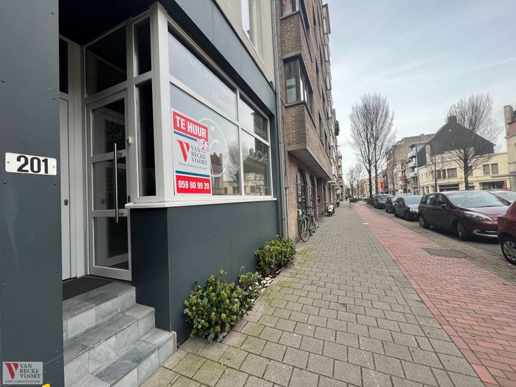Deze moderne handelsruimte van 55m² is gelegen langs de Torhoutsesteenweg, een drukke verbindingsweg met veel voorbijgangers.