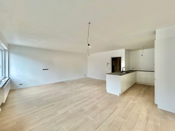 Het gelijkvloers appartement biedt een ruime, lichtrijke leefruimte met open keuken, afgewerkt met moderne toestellen en veel lichtinval. Er zijn twee ruime slaapkamers, perfect voor gezinnen, koppels of als werkruimte. De moderne badkamer is voorzien van een inloopdouche en heeft een praktische ruimte voor een wasmachine en droogkast. Daarnaast is er een apart toilet voor extra comfort.