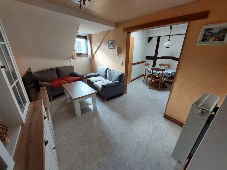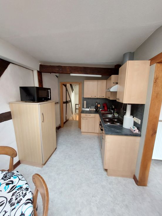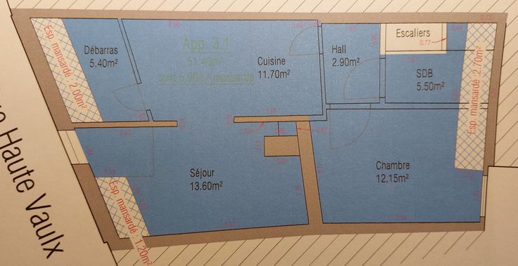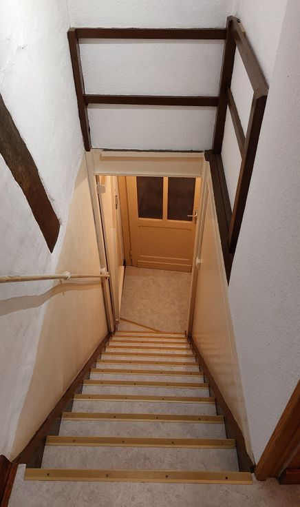 Composition : escaliers avec hall d’entrée, cuisine, débarras, séjour, salle de bain, 1 chambre à coucher.