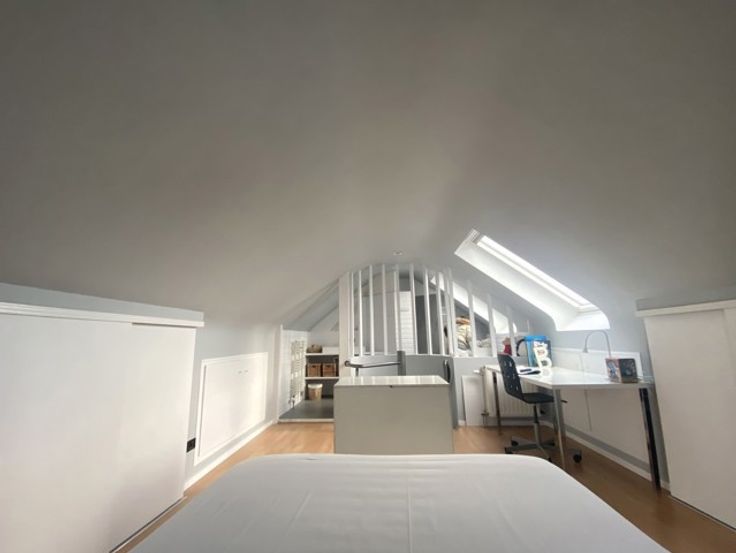 • 3e étage : chambre de 18 m² avec salle de douche, toilette et rangements.