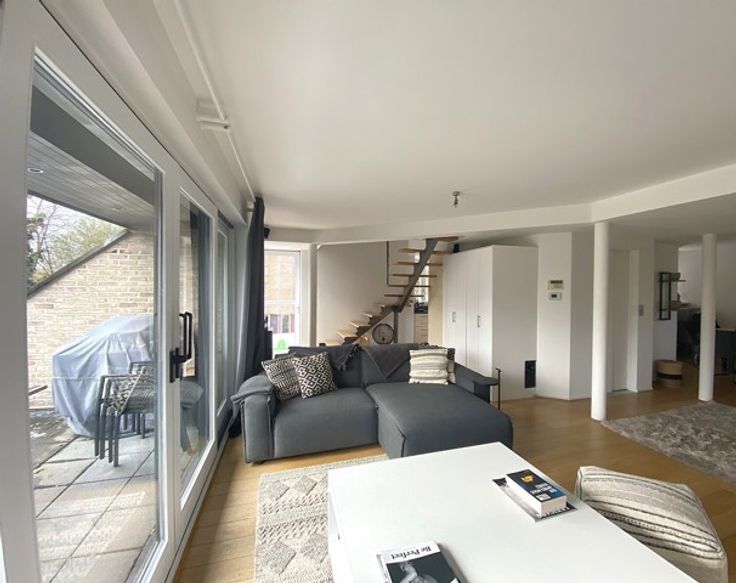 • 1er étage : séjour lumineux, salon, cuisine full équipée ouverte sur la salle à manger, terrasse de 19 m² exposée sud.