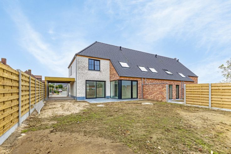 Indeling wonigen: Op het gelijkvloers bevinden zich de mooie inkomhal met gastentoilet en de grote leefruimte met open keuken gekoppeld aan een erg ruime keukenberging. Op de eerste verdieping beschikt de woning over 3 zeer ruime slaapkamers, een badkamer (inloopdouche, dubbele lavabo en mogelijkheid tot het plaatsen van een ligbad) en afzonderlijk toilet op de gang. De woning biedt de mogelijkheid om een vaste trap te plaatsen naar de tweede verdieping, waar u tevens een extra slaapkamer of hobbykamer kan inrichten. De halfopen bebouwingen beschikken over een carport met aangelegde oprit, terras en omheinde tuin. De gesloten bebouwing herbergt een inpand...