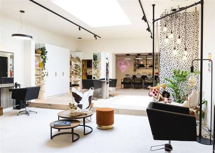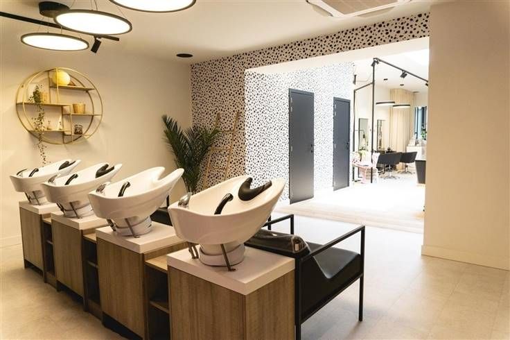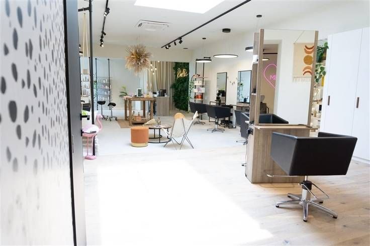 Het salon is uitgerust met 7 kapperstoelen en 4 wastafels, met voldoende ruimte voor uitbreiding van het aantal stoelen. De inrichting is op maat gemaakt en de verlichting is speciaal ontworpen door een professional om een optimaal lichtniveau te bieden, ideaal voor kleuringen die het dichtst bij natuurlijk licht komen.