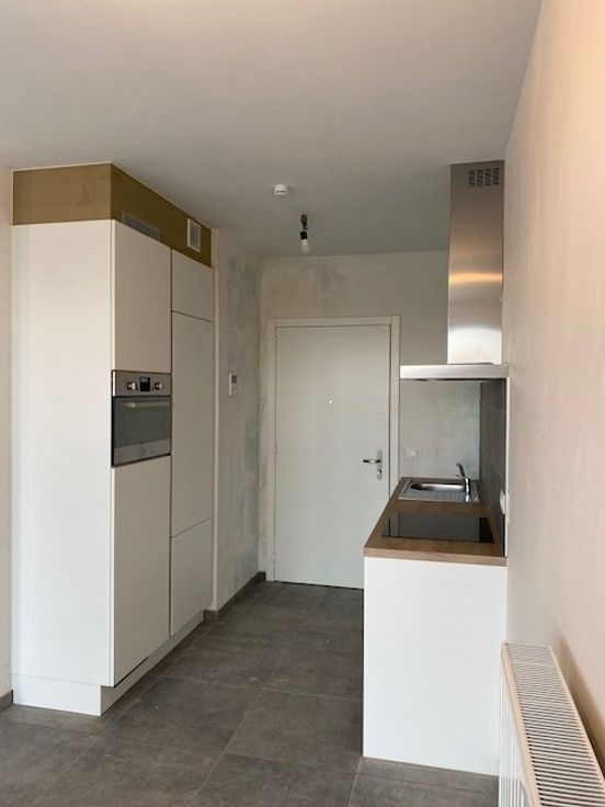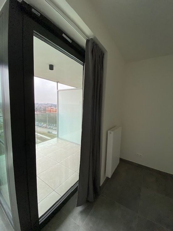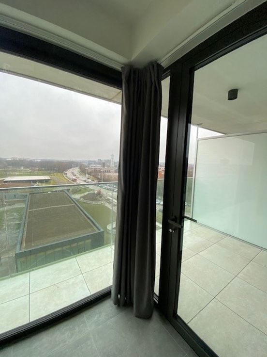 De indeling van het appartement is als volgt: Via de inkomdeur kom je in de living met geïnstalleerde keuken en de living, en de badkamer. De keuken is voorzien van alle hedendaags comfort ( vaatwasser, oven, voldoende kastruimte, ...) De gigantische raampartij zorgt voor een zeer aangenaam zicht en een mooie lichtinval in het volledige appartement en biedt ook toegang naar het ruime terras. Het appartement is gelegen op de 7de verdieping en zorgt daardoor voor een prachtig panoramisch zicht. Er is een ruime badkamer met inloopdouche, een lavabo en een toilet. De vaste kosten bedragen €70 inclusief voorschot op verwarming. Een autostaanplaats onder het gebouw is mogelijk tegen meerprijs.
